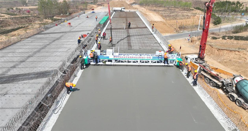 慶章高速二標段施工現(xiàn)場,壓路機、攤鋪機等大型機械設(shè)備正在緊張有序作業(yè),全體參建者放棄休假,堅守崗位,聚焦關(guān)鍵節(jié)點、關(guān)鍵環(huán)節(jié),重點推進G220國道與大年陳樞紐互通立交建設(shè)進度。截至目前,路基土方工程完成92%,梁板吊裝完成87%,橋面系、路基防排水和路面水穩(wěn)基層全面展開。
