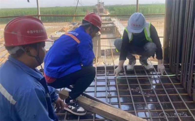 濱州樂安黃河公路大橋及接線工程主橋19#墩 0#塊鋼筋綁扎現(xiàn)場,監(jiān)理人員正巡視檢查預應力管道錨墊板位置、鋼筋綁扎位置。監(jiān)理人員積極響應“大干300天,奉獻在樂安” 勞動競賽暨黨建共建活動號召,秉持“嚴格監(jiān)理、優(yōu)質(zhì)服務,科學公正、廉潔自律”工作理念,堅守安全、質(zhì)量、廉政底線,不斷提升精細化管理水平,為項目建設(shè)保駕護航。