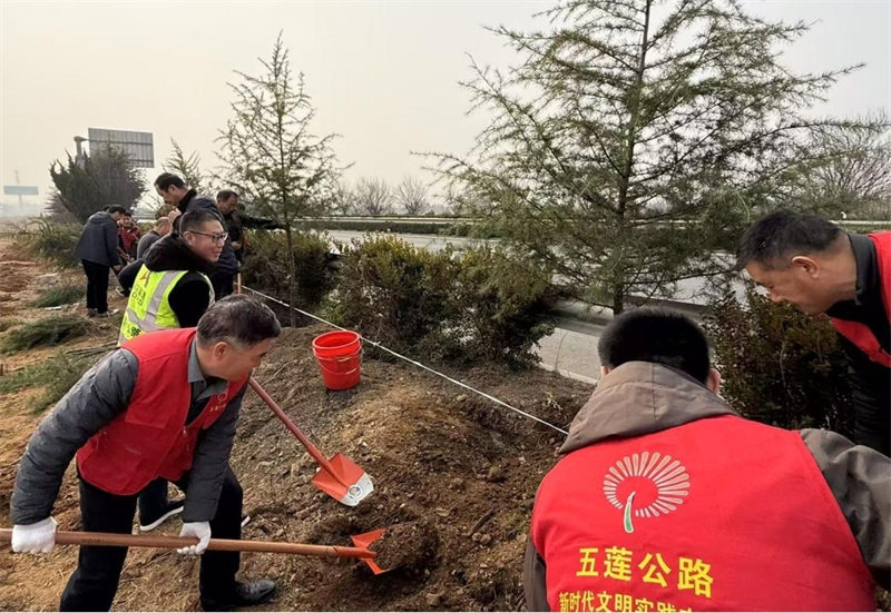 3月12日,正值植樹節(jié),董梁高速一標(biāo)段項目部聯(lián)合五蓮縣公路事業(yè)發(fā)展中心,在叩官鎮(zhèn)G342國道旁開展“黨旗領(lǐng)航植新綠 合力共建筑新景”植樹活動。